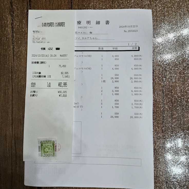カルア、ソイは年1回のワクチン、ゴマは去勢手術可能か骨の成長確認の為レントゲン、シルクはFIV 症状緩和の為注射、
