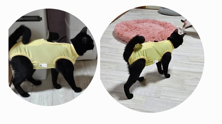 あずきちゃんは傷口保護のためエリザベスウエア姿に