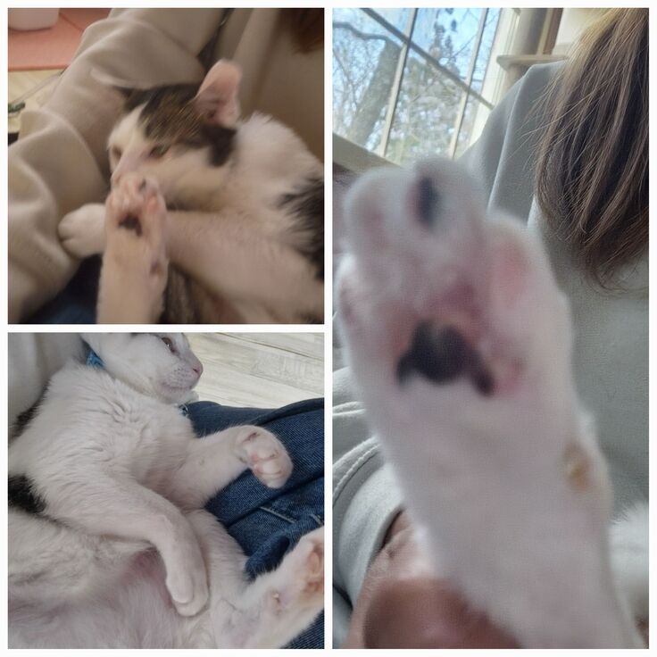 爪切り中の違和感に後ろ足の指を数えてみると⁉️5本(両後ろ足)えっ…通常の猫の後ろ足の指は4本…多指症ということがわかりました。日本では珍しいそうですが…双子のあずきちゃんと下の兄妹おもち&おはぎは異常なし…❗現在7ヶ月のゴマちゃんは身体の成長も遅いため4ヶ月のおもちくんと変わらなくなってしまいました⁉️