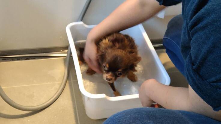 足がおしっこで汚れてしまっていたためお風呂に入りました。温まったからか、お風呂の後は立派なうんちと大量のおしっこをして満足気でした。