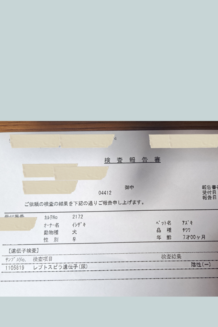 また、二回目の尿検査でもレプトスピラ症陰性の結果が出ました。