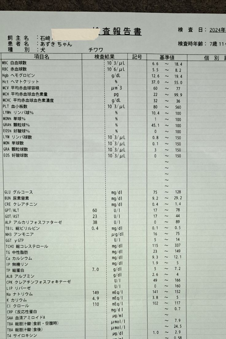 血液検査では…肝機能が正常値でした!抗生剤を強いものに変えたので心配でしたが、よかったです。
