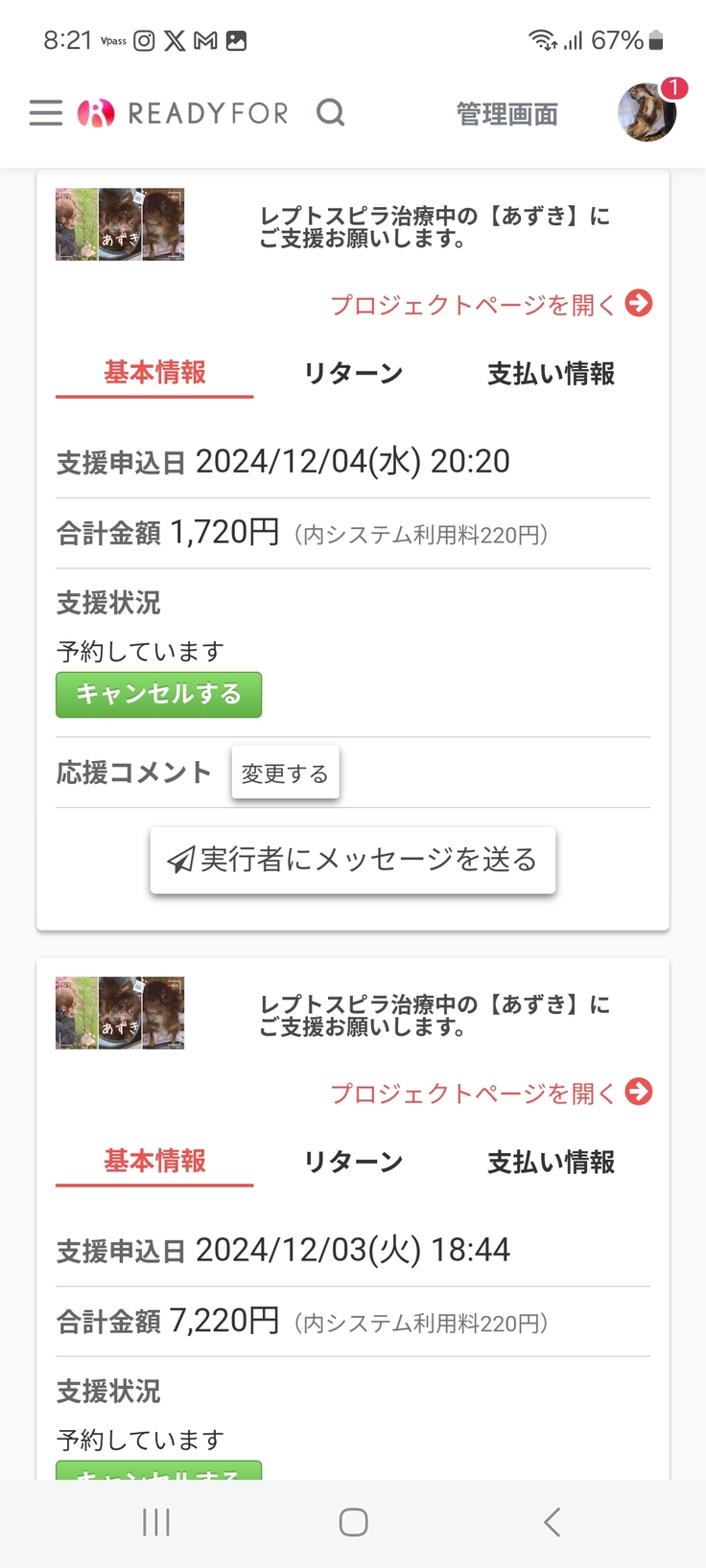 12/3A様、12/4P様よりPayPayにてご支援ありました。