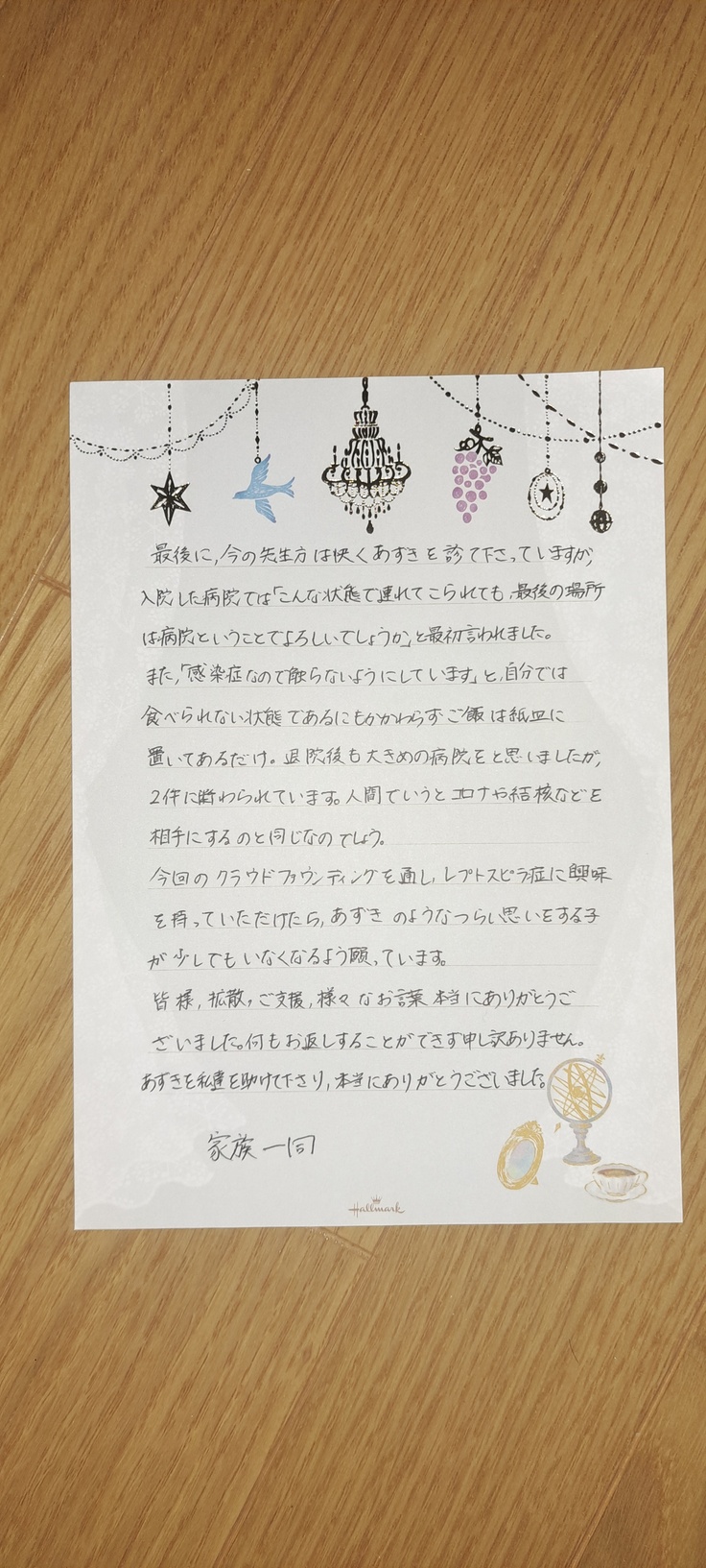 また遅くなりましたが、お礼の言葉を載せさせていただきます。
