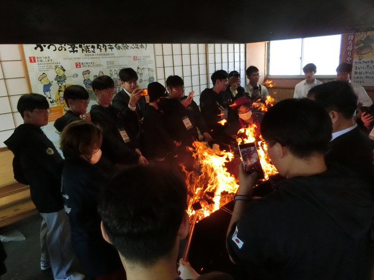 また、その地域の文化にも触れ、昨年度、柳韓工業高等学校の生徒さんが3年ぶりに本校を訪問していただいた際には、カツオのたたきづくり体験もしてもらいました。