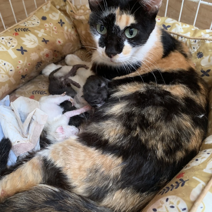 戻ると30分後に1匹目出産✨そして約2時間半で5匹の元気な赤ちゃんを頑張って産んでくれてました🐈