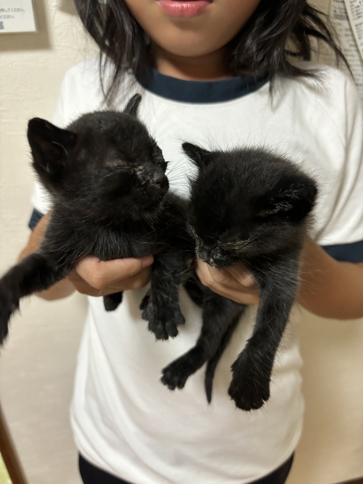 まさかの目が開くかどうかの仔猫が2匹ちょこんといました。親猫らしき猫は逃げていき仔猫だけ置き去り😣本来なら親猫に育ててもらい