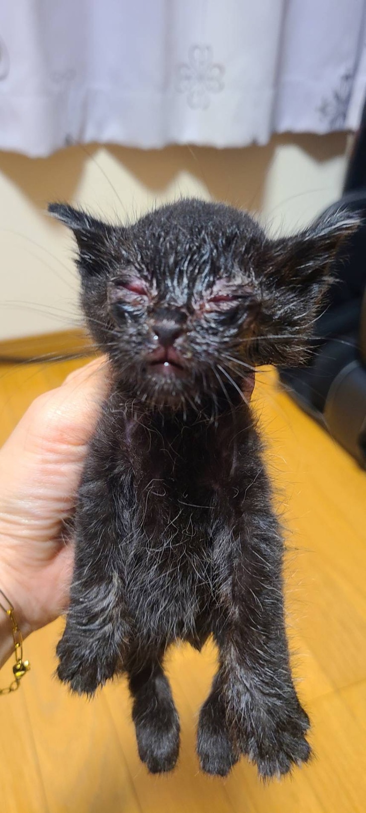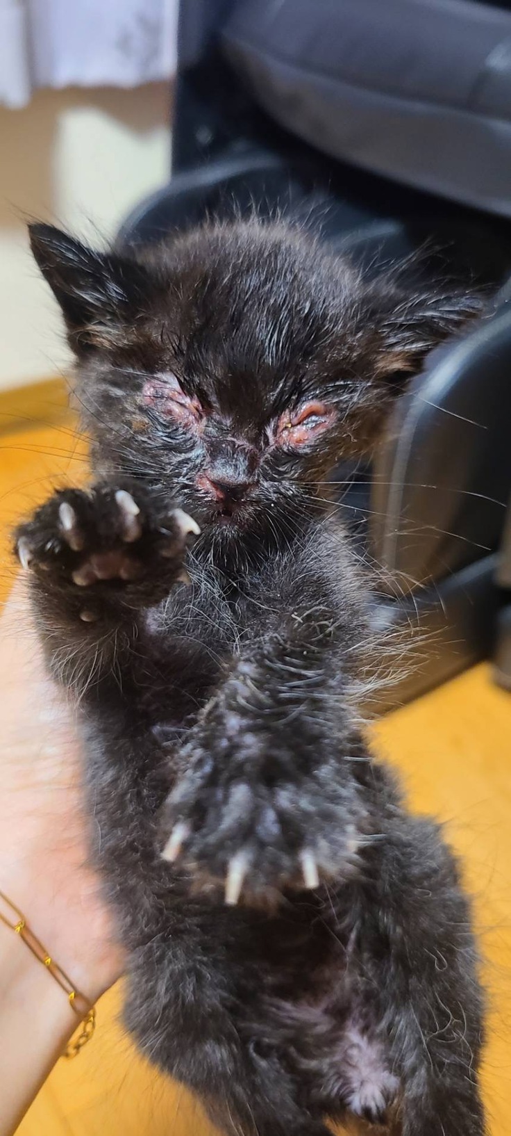 大きい黒い仔猫の方は生まれつき目がないと思われるので全盲になる可能性もあるかもしれません。