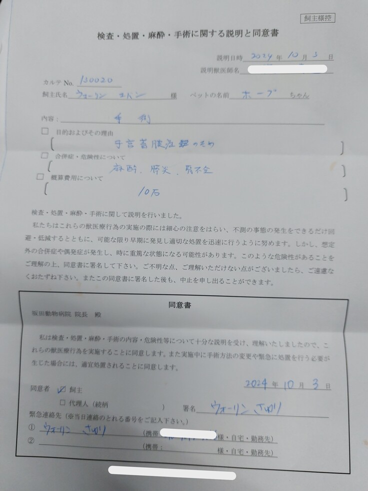 全額今回のホープの子宮蓄膿症治療による出費に充てたいと思います。
