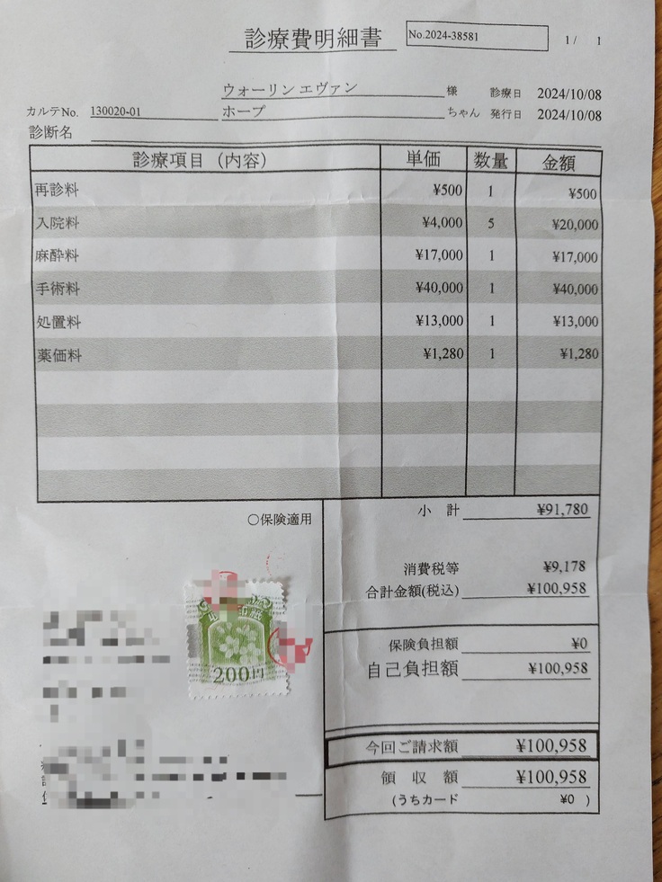 まだ何の準備もないまま急な手術となり、大きな出費でしたが
