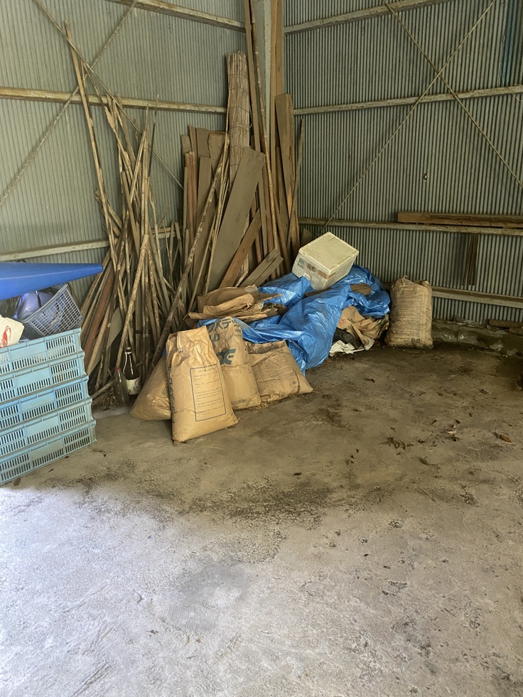産業廃棄物なども多かった為、ゴミ専門の事業者さんに来て頂きある程度大きいものは運んでいってもらいました。今後の事業に使えそうなものを探りながら、必要なものは残し、片付けしていきました。
