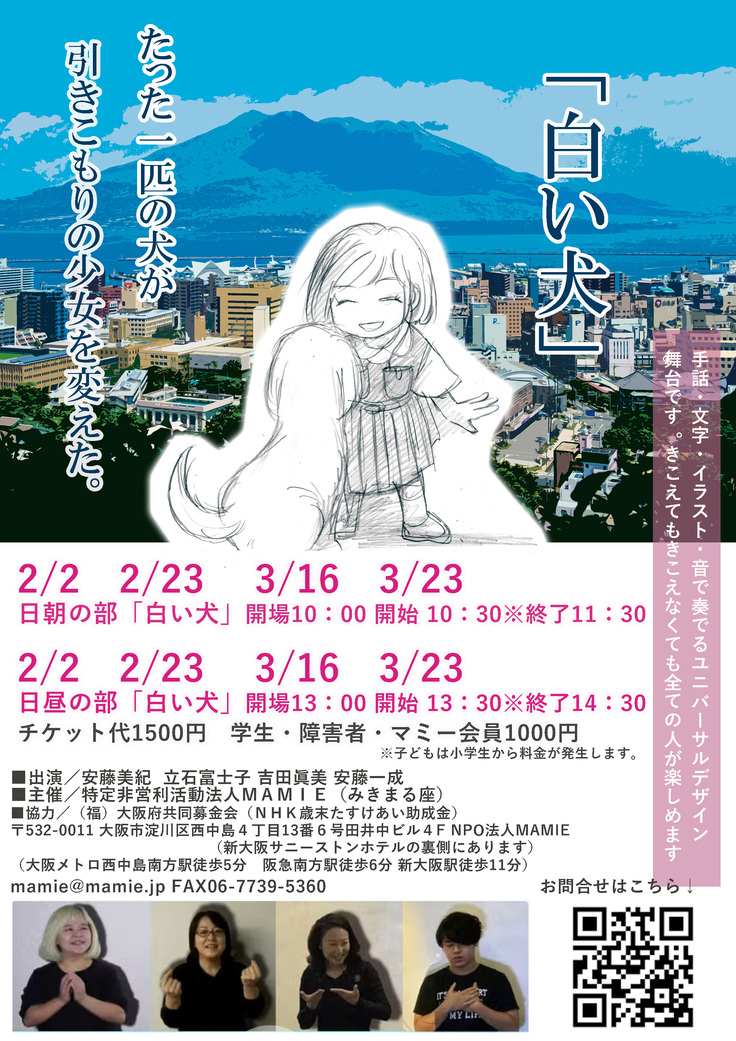 「聴導犬・聴覚障害啓発の「白い犬」オリジナル絵本を作って広めたい!」の物語でもある、「白い犬」の舞台が2月から3月まで8舞台がスタートします。