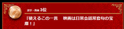 毎週月・水・金曜日に発行している無料メルマガ「使えるこの一言 映画は日常会話常套句の宝庫!」がまぐまぐ大賞の語学・資格部門第三位という大変嬉しい賞をいただきました!!