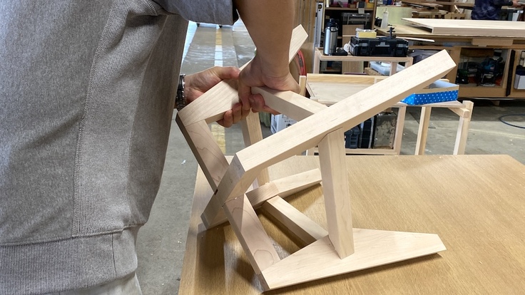クラウドファンディング受付が終了した後から製作を開始していただき、脚の部分の組み立て工程が幾つか終わっていました。ちょうど脚の部分を組み立てている作業に立ち会うことができました。