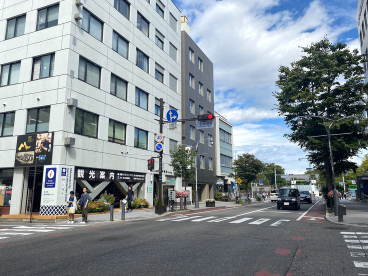 松本市観光情報センターは、松本城のすぐ南。松本城をはじめ市内観光される大勢の方が通行する「大名町通り」にあります。