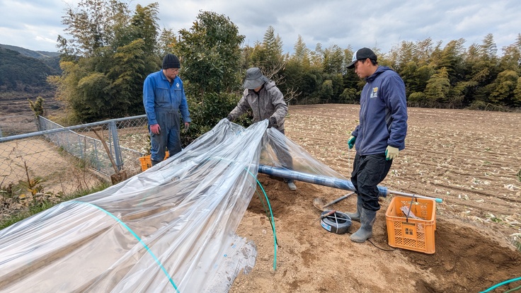 一方で、日中晴れた日にはハウス内の温度が急上昇するため、換気作業も欠かせません。