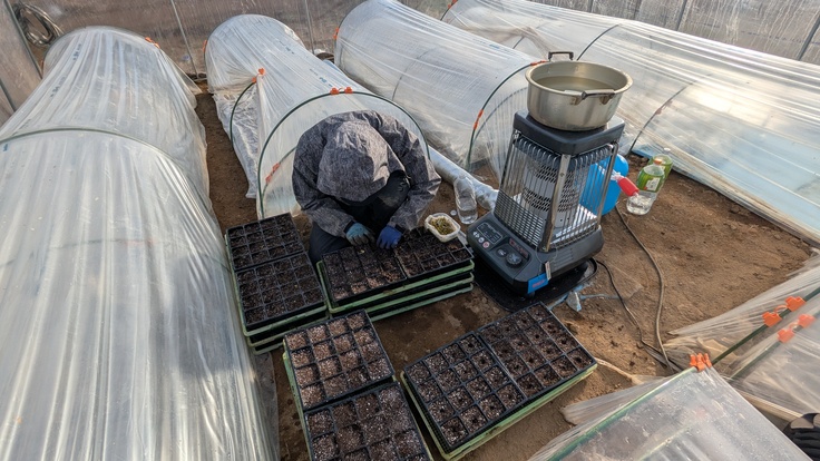 今回は、苗作りから定植・播種の様子をご報告いたします。