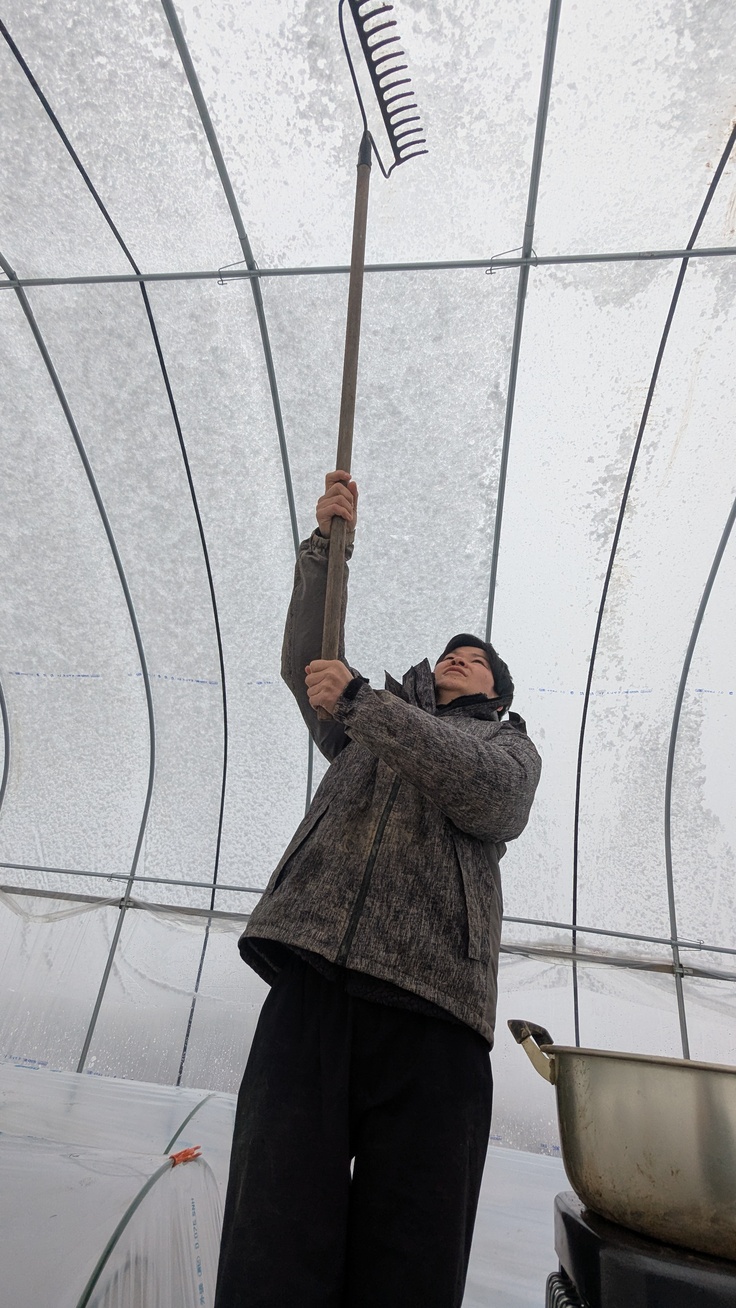 冬の厳しい寒さの中でも元気に育ってもらうため、ハウス内にはストーブを設置し、温度管理に努めました。
