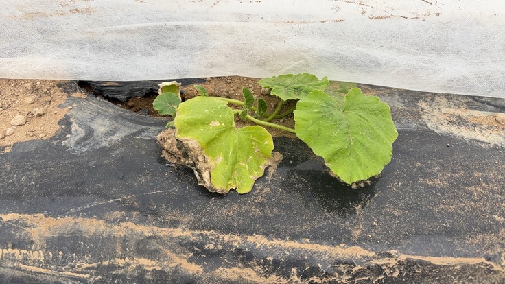 定植後、想定以上の冷え込みが発生し、霜による低温障害が発生しました。定植後、何度も寒波が訪れ、苗へのダメージが大きく、加えて強風によってトンネルが飛ばされるという事態も起きました。