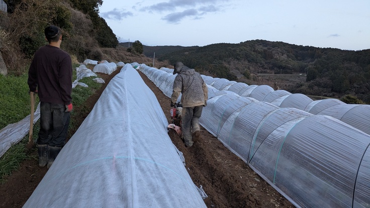 また、定植から2~3日後には、約二反の畑の苗がきれいに食べられてしまうという事態が発生。おそらく猪による獣害と思われます。