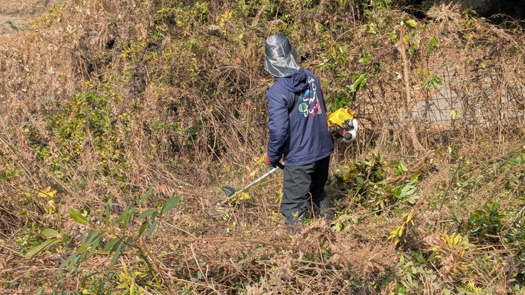 私たちは草刈り機やチェーンソーを駆使し、約1か月間、雑草や木を取り除いてきました。