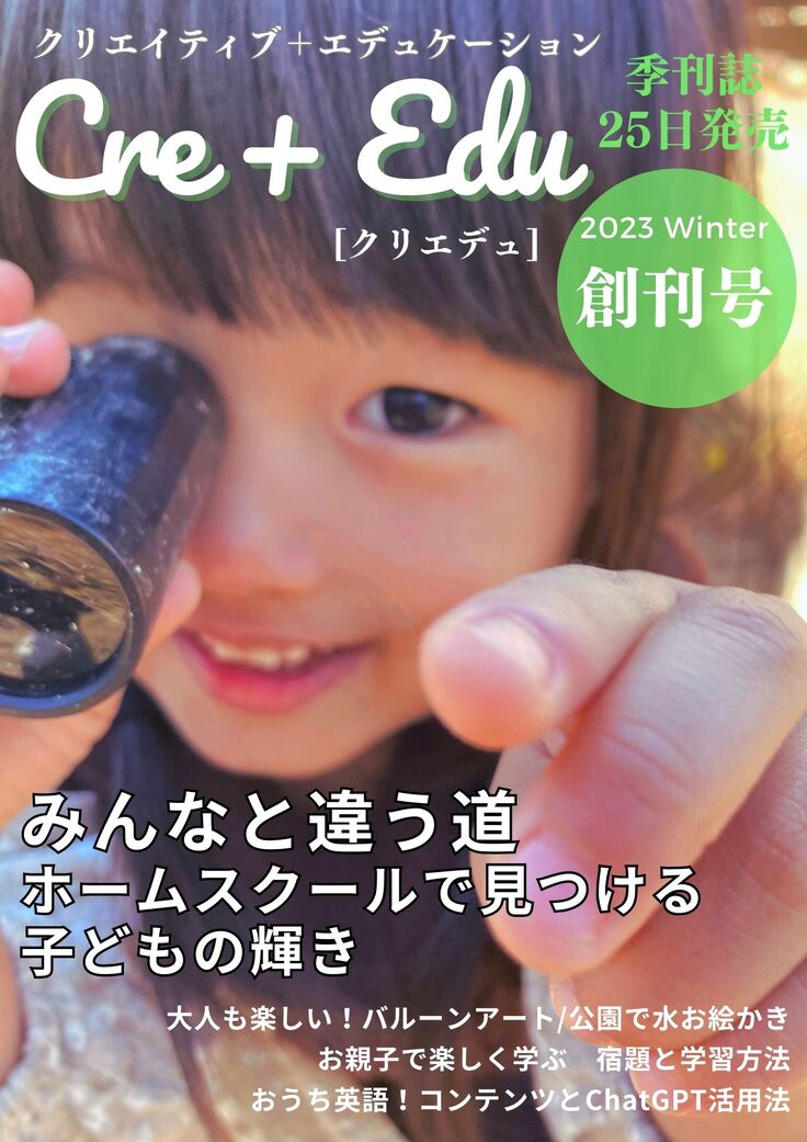 わたしは、2023年の12月から子育てマガジン「Cre+Edu(クリエデュ)」を主宰し、発信を通じて多くの親御さんたちとつながって電子書籍で雑誌を発行しています。