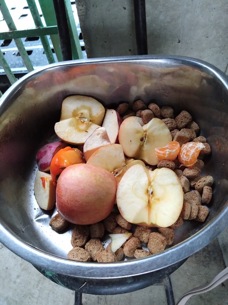 リンゴ、柿、ミカン、サツマイモ、ジャガイモ、クマフード