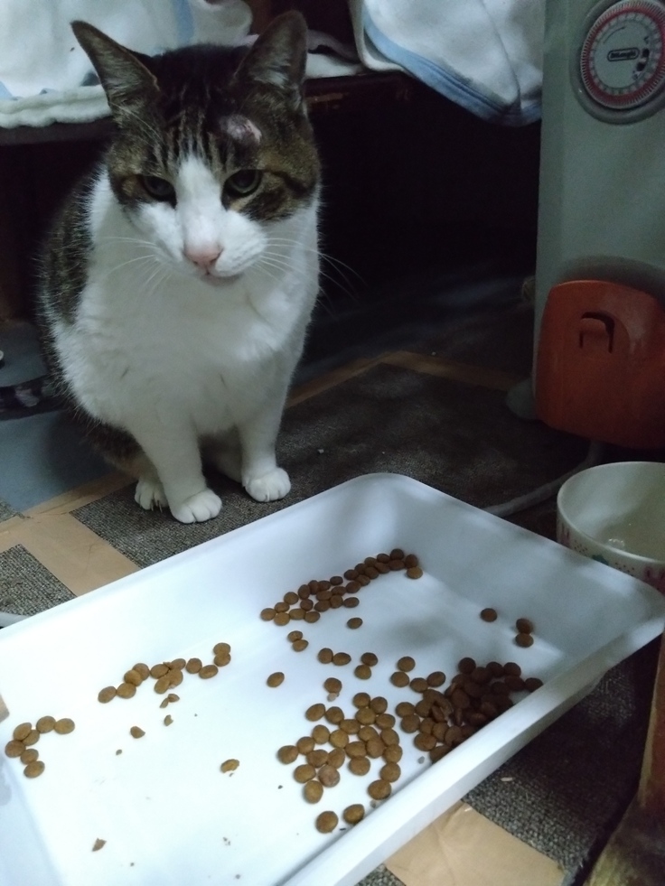 しかし、なぜか餌の器が空になっています。