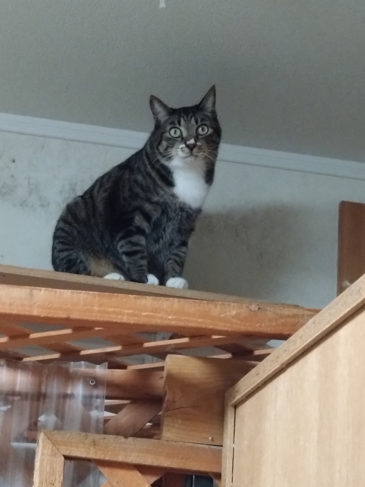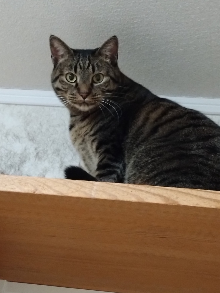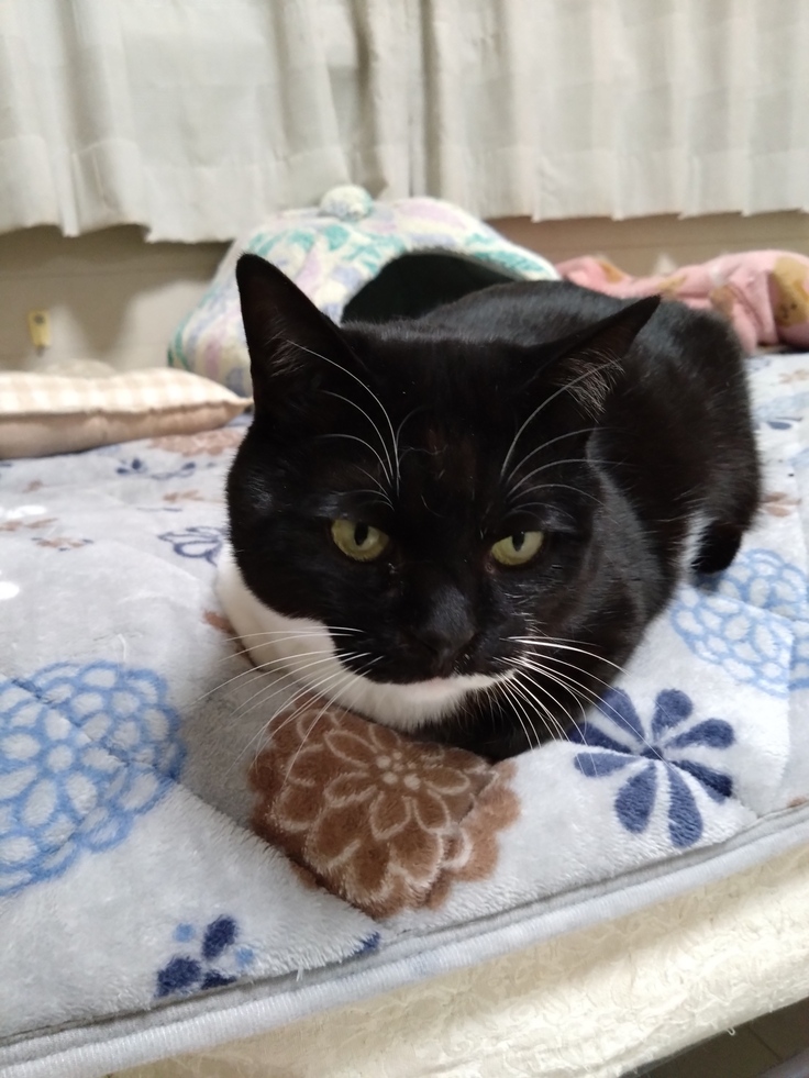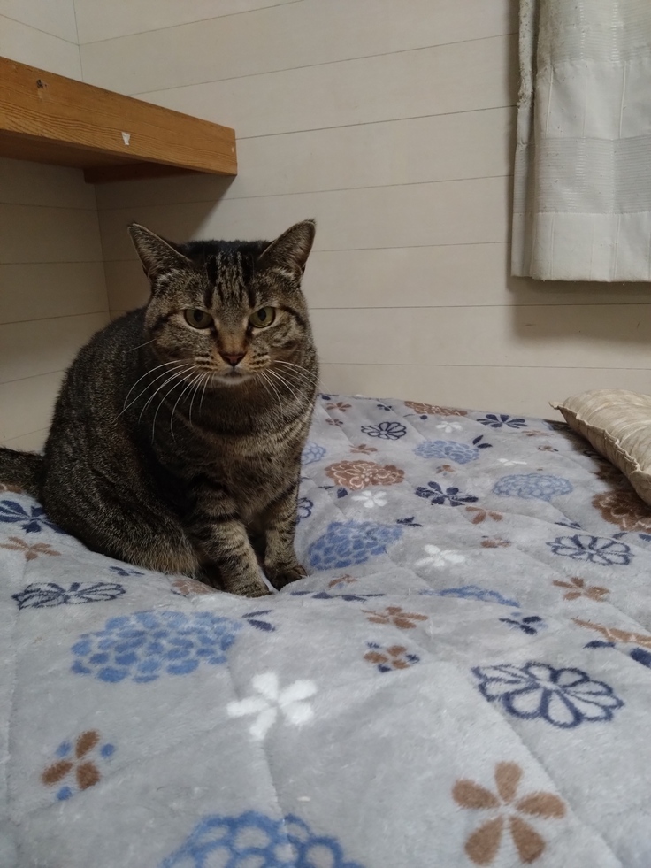 2年前の夏頃、くまんち近くの土手に痩せてガリガリだった土手ちんがいました。咄嗟に、母と友人が手に持っていたお菓子をあげたら手をかすめながらお菓子だけくわえて持っていき草むらの中で必死に食べていました。それから毎日12月になるまで家族の誰かが餌付けしに行き、慣らしていきました。そしてついに雪が降る直前に捕獲を行い無事確保。健康診断、去勢を経てくまんちへ。