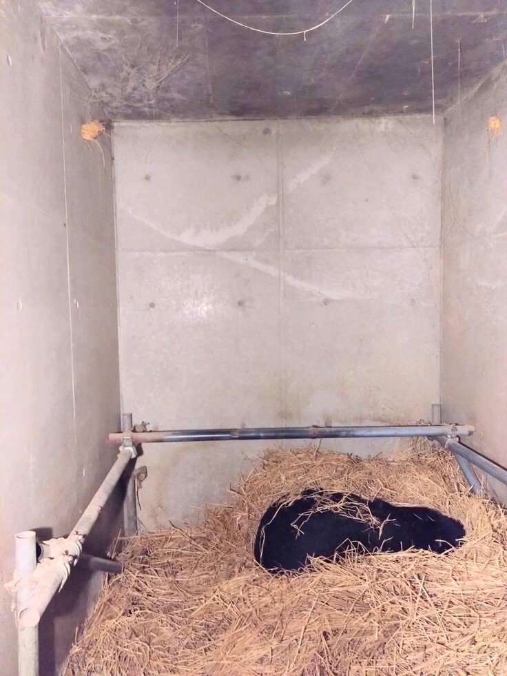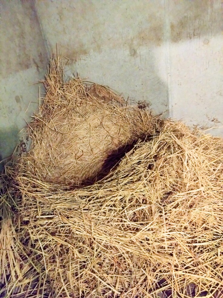 前日に取り替えた新しいワラに埋もれて寝ています。