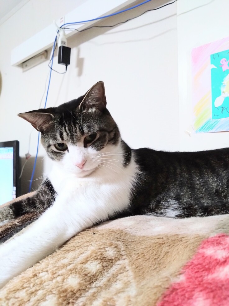 赤ちゃん猫で保護されミルクで育てましたがお腹が弱い子だったため里子には行かずそのまま保護することに。