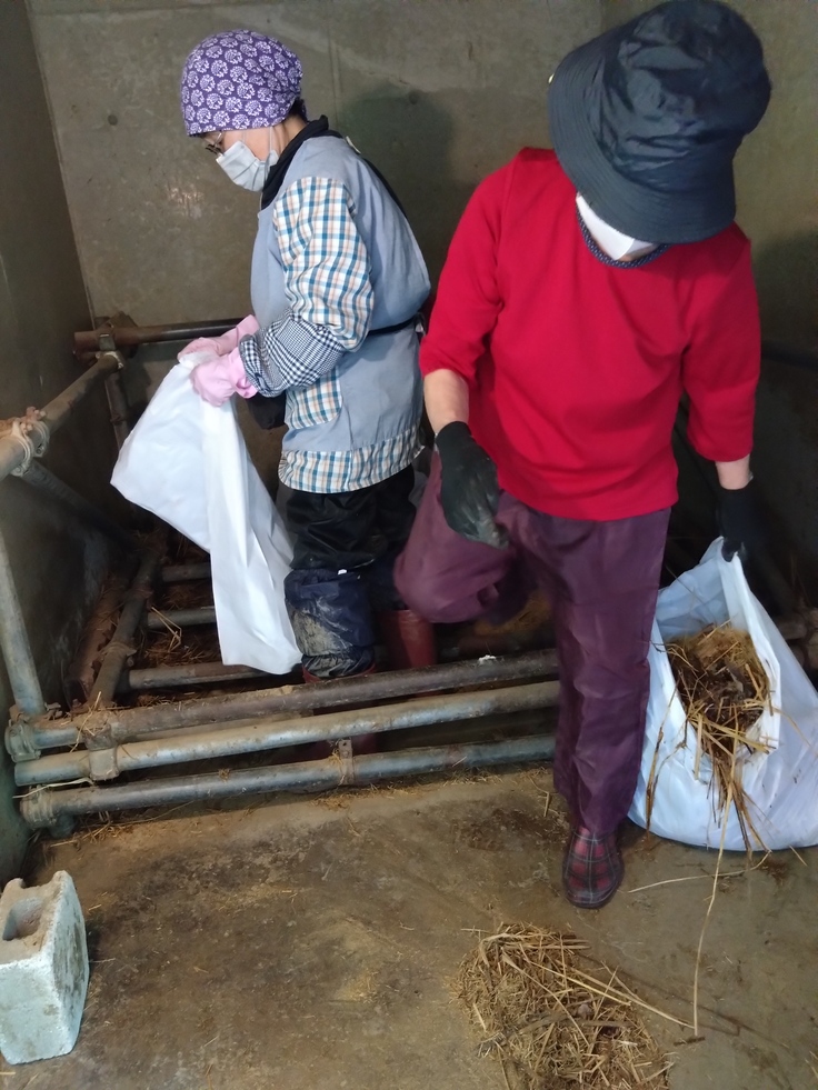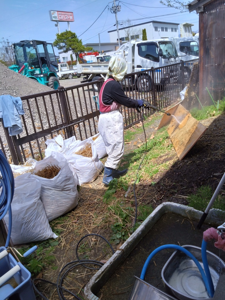 例年同様、敷きワラをすて高圧洗浄で大掃除