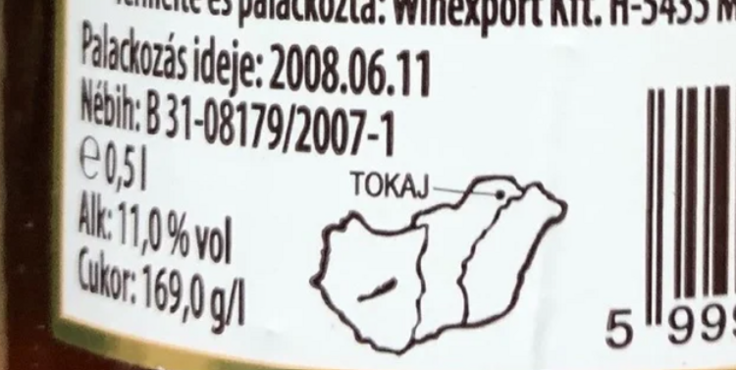 今回のメインリターンである、1枚目の写真左側のワイン・2002年ヴィンテージの琥珀色のトカイワインは、6プットニョシュの条件である150グラムを優に超える残糖度169グラムを誇ります。このため、下の写真にあるように、裏ラベルに敢えて169グラムと記してそのすばらしさをアピールしています。