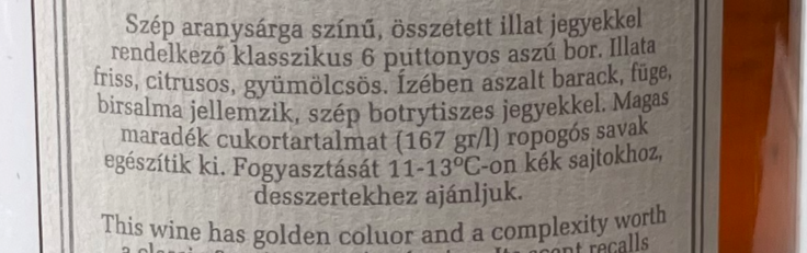 このため、トカイワインでは残糖度が45グラム以上ないとトカイ(貴腐)ワインを名乗れず、120グラム以上ないとアスーや5プットニョシュ、6プットニョシュといったランクを名乗れなくしています。