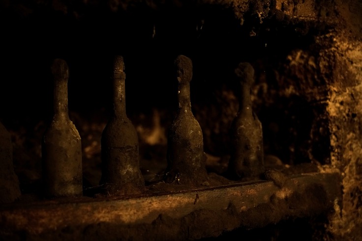 これは、セラー内にある貴腐菌がたくさんついたボトル。この貴腐菌がトカイワインを醸します。