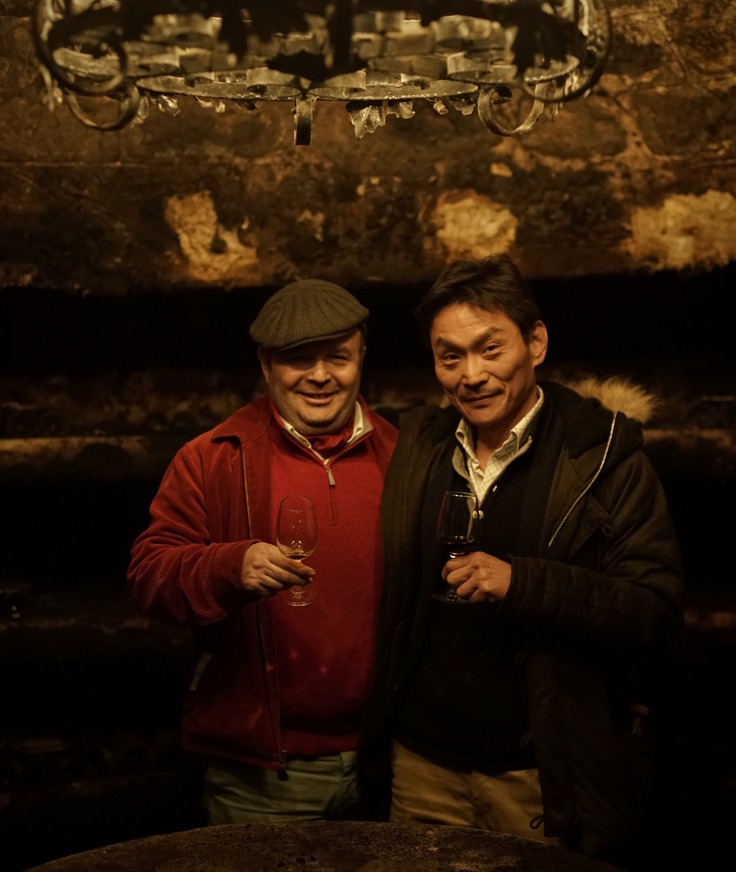 で、これが私、飯塚とKissさんのセラー内での写真。4年ほど前なので、まだ若いです。。