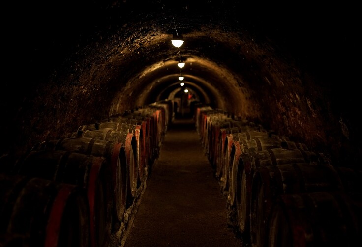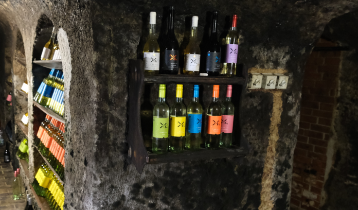 地下深いセラーには、このように樽が並んだ通路が縦横無尽に走っています。ワイナリーの起源は13世紀にまで遡り、このセラーはオスマン帝国襲来時に隠れ家として利用されていたそうです。