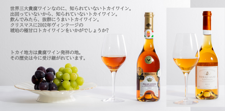 2002年ヴィンテージの極甘口トカイワインなどとともに、サモロドニタイプの比較的お手頃な甘口トカイワインも用意しておりますので、ぜひクリスマスの夜にお楽しみください。
