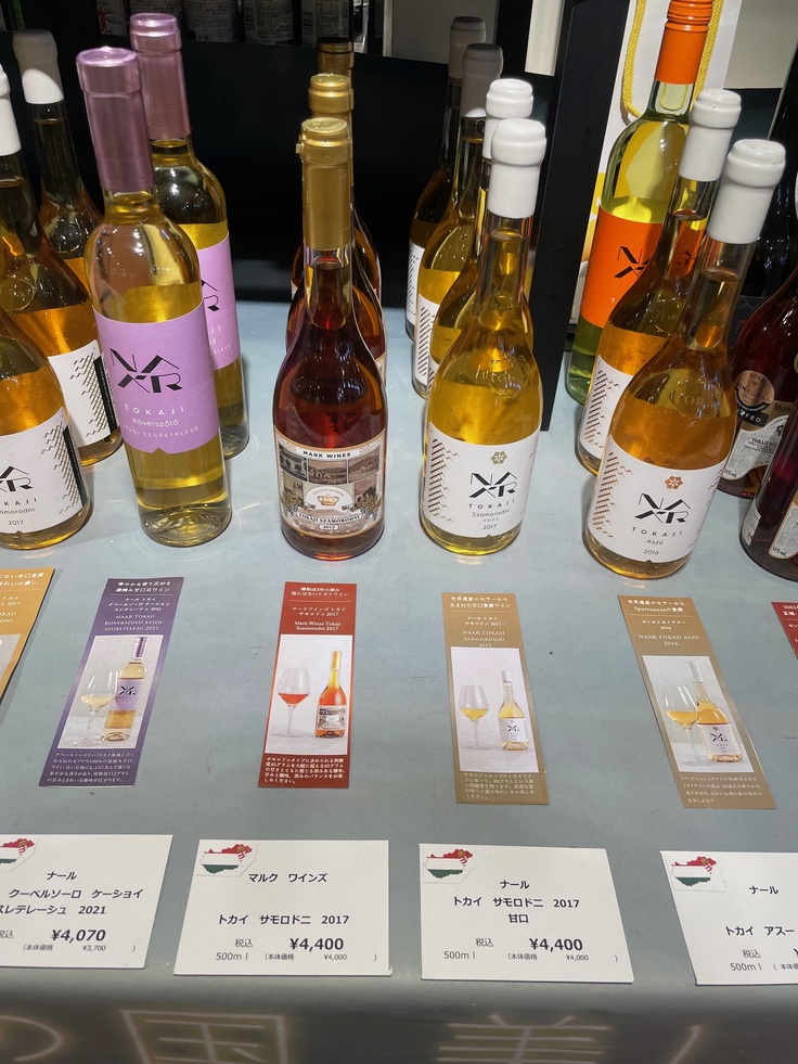 このワイン、26日まで行っている大阪のあべのハルカス近鉄本店の催事でもお出ししています。売り場の一角を占めるハルチカBarでもグラス売りをしていただいているのですが、そこでもこの2種のトカイワインは人気です。
