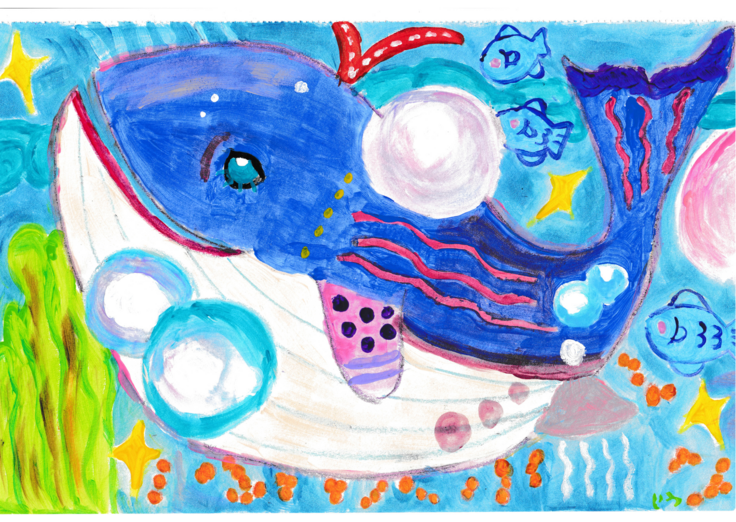 🌊「クジラ」カードは、大海原を泳ぐ母クジラが、たくさんの心を優しく包み込む様子を表現。
