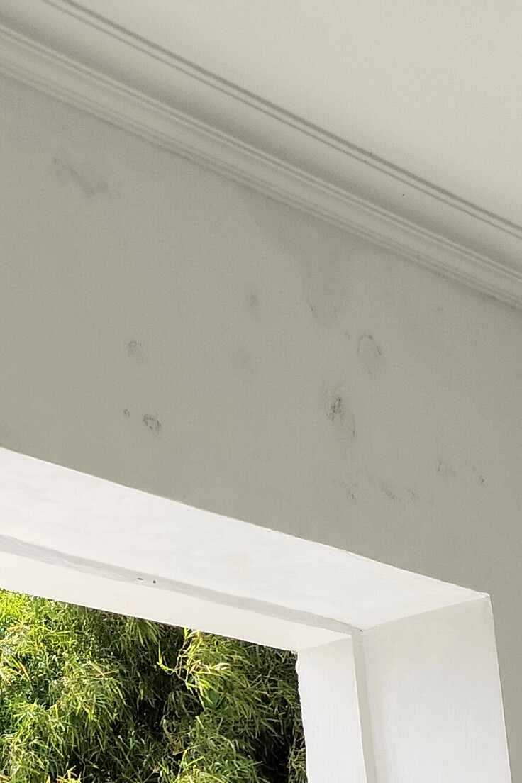 オーナーさんから壁のペイント塗りは終わったと聞いておりますが、このシミは雨漏りの後なのか気になります。
