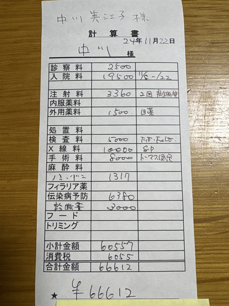 ★ 11月9日:レントゲン撮影などの検査を行う。