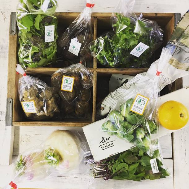 BIO CREATORSの季節の野菜セット7品目+有機米2合サイズを、季節ごとに3回お届けします。