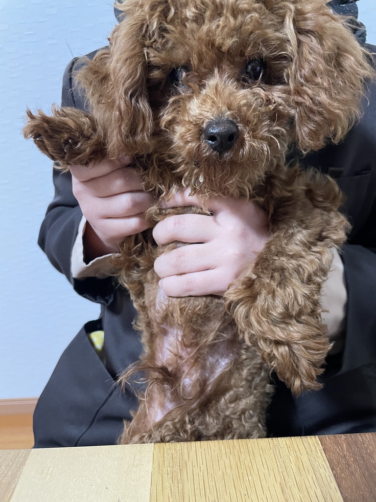 こてつが歩く姿などを確認せずに飼い主様とお話を少しして子供たちに抱っこしてもらい車で家に連れて帰りました。