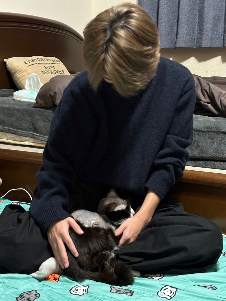 (入院から帰ってきて1番に兄:喬太郎の膝に自分で乗りに行ったとろろの写真)