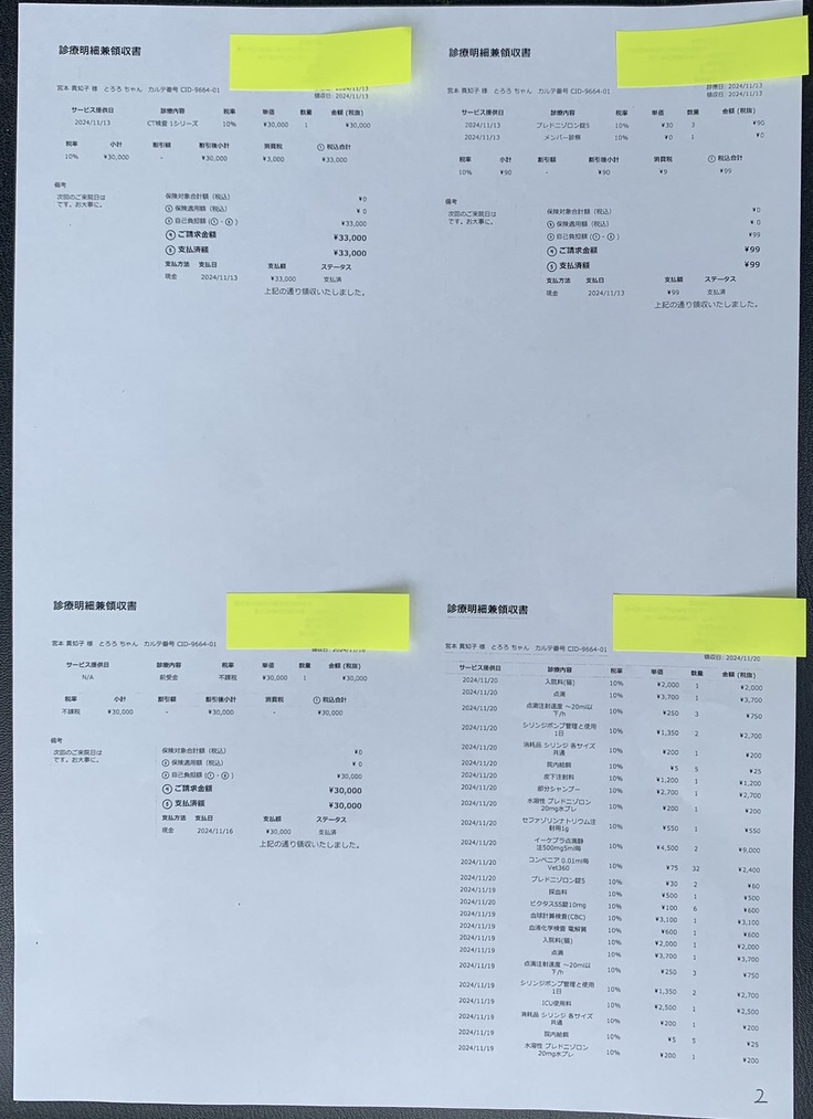 ページ上に掲載している診断書や診療明細書などの資料は全て動物病院から掲載の許諾を得ております。