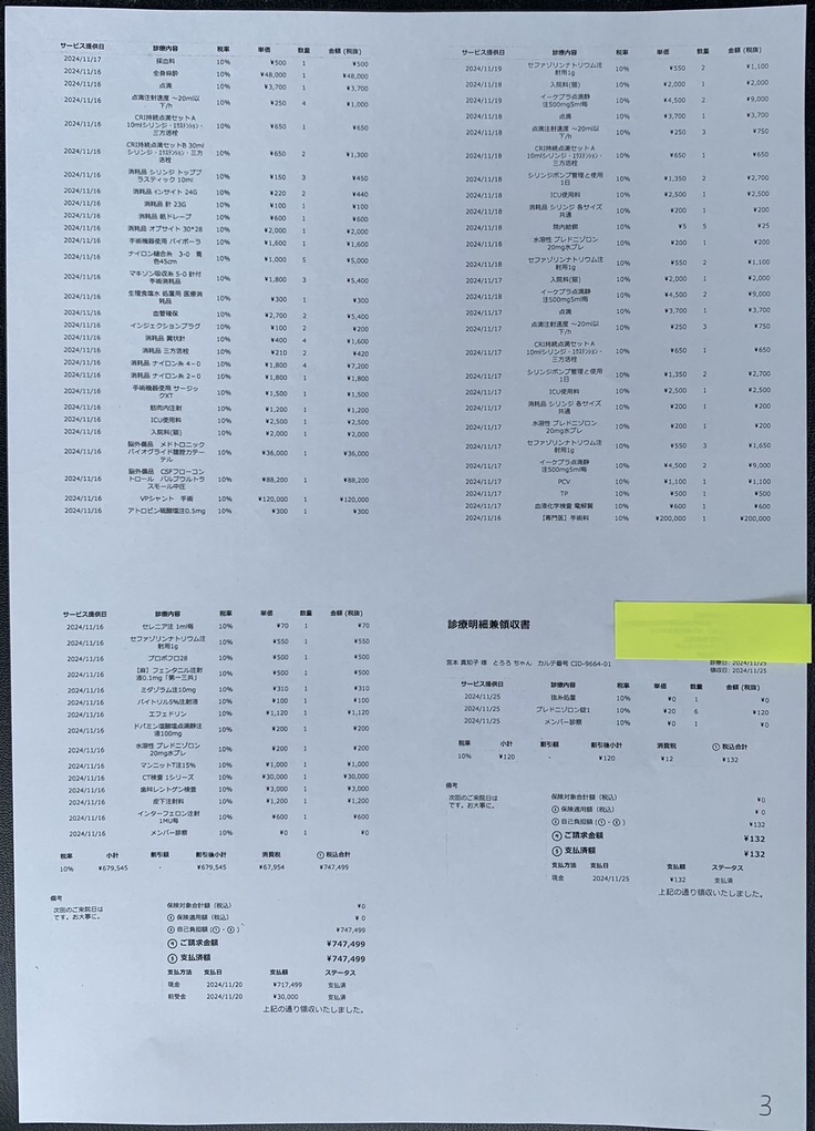 ちなみに、150万の内訳は…( FIP の治療費 138,457円 水頭症の手術費 747,499円 その他水頭症治療費 180,766円