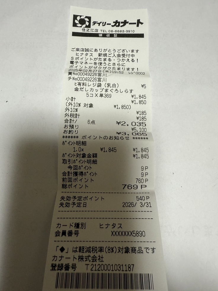 今後使い切るまでは領収書をアップさせていただきますm(_ _)m