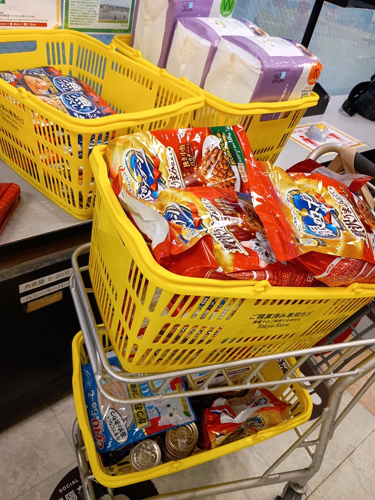 ボラ仲間で落ち合い、3割引の日にフードを爆買いしますʕっ