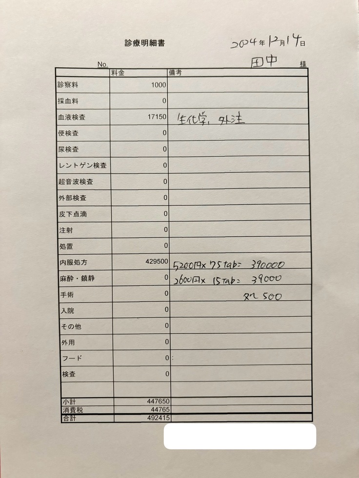 血液検査代 17,150円